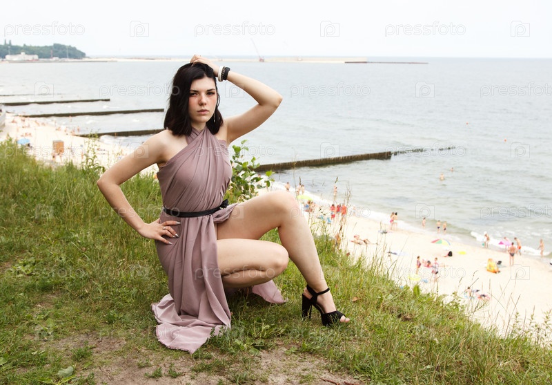Молодая женщина сидит у моря