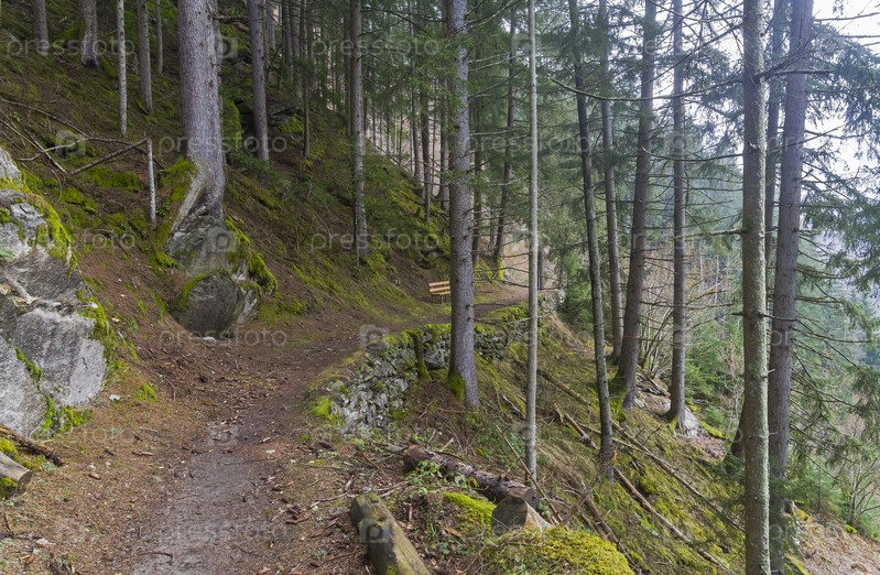 Тропа на горном склоне. Австрийские Альпы, Тироль, окрестности горнолыжного курорта Майрхофен