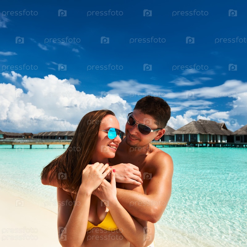 Пара на пляже на Мальдивах