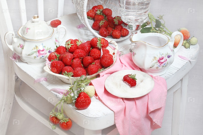 Клубника с сахаром на белом фоне