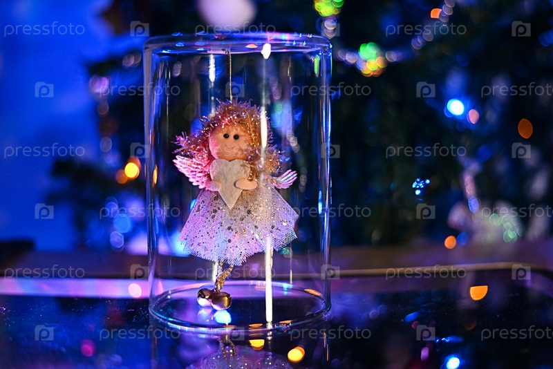Рождественская зимняя сцена - рождественский ангел на темно-синем фоне с пространством для копирования