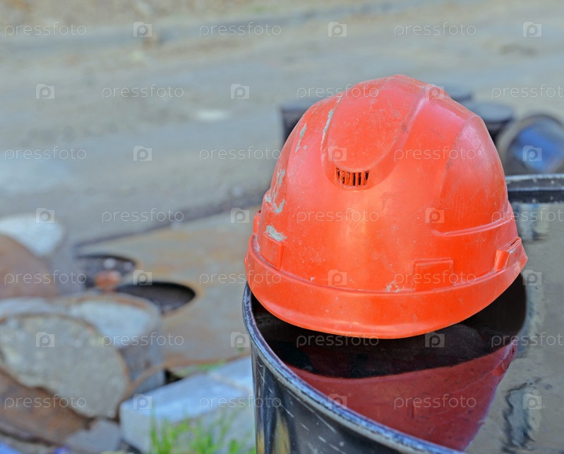 Строительная каска на бочке