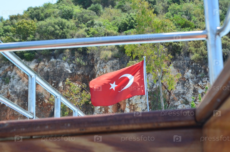 Флаг турции на развивающемся фоне гор