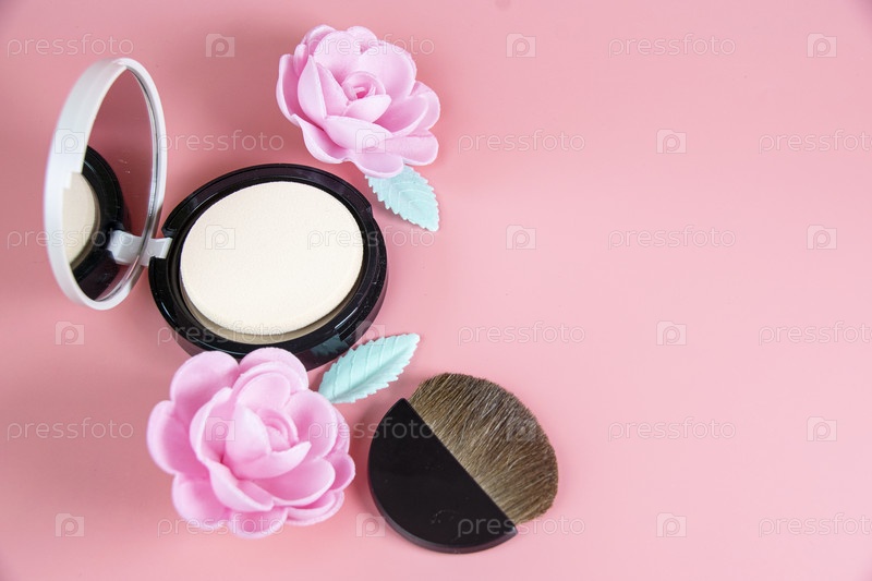 Натюрморт с декоративной косметикой и розовыми цветами