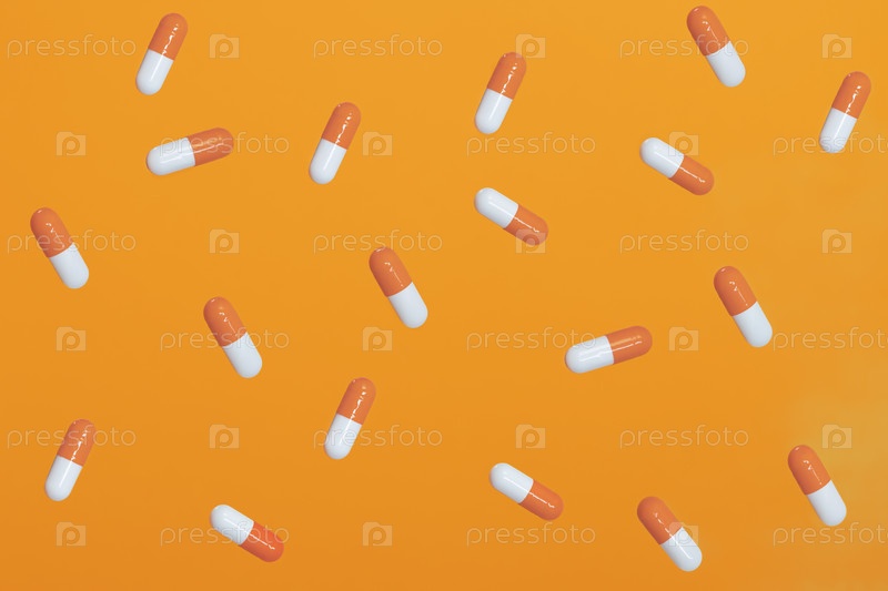 Оранжево-белые таблетки на оранжевом фоне