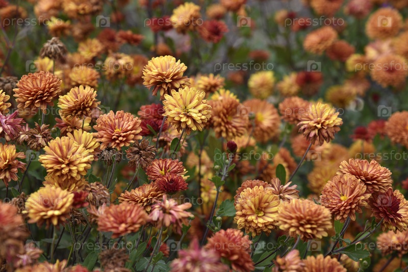 Оранжевая корейская хризантема в саду поздней осенью. Красивые оранжевые цветы хризантемы