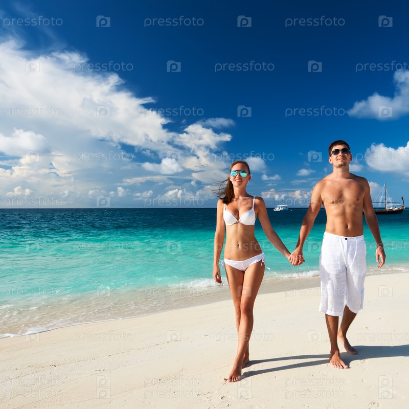 Пара на пляже на Мальдивах