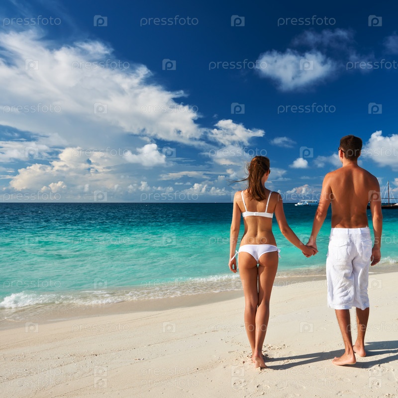 Пара на пляже на Мальдивах