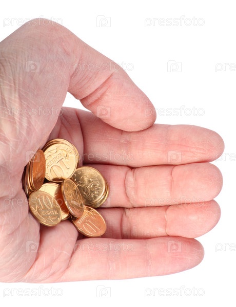 Рука с изолированными медными монетами