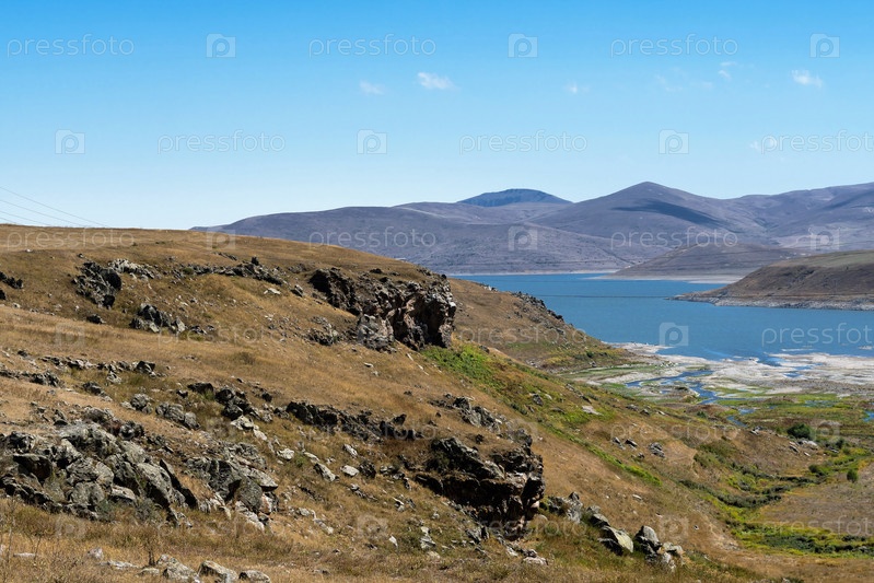 Армения, Нораванк, сентябрь 2022 г. Небольшое озеро среди пологих гор