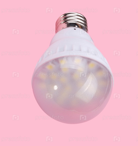 Светодиодная лампа на розовом фоне