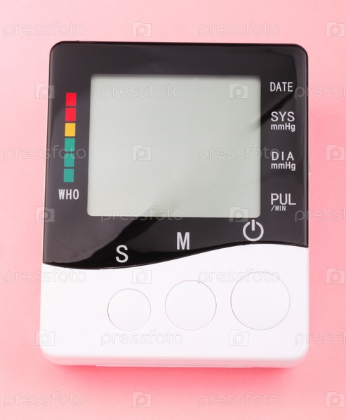 Тонометр на розовом фоне