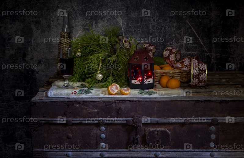 Рождественский натюрморт на деревянном сундуке