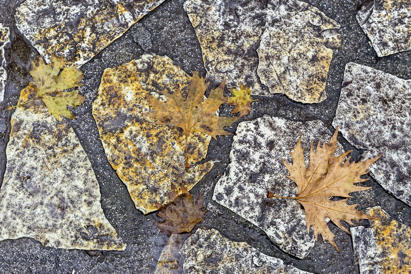 Абстрактный фон с каменной дорожкой и желтыми листьями