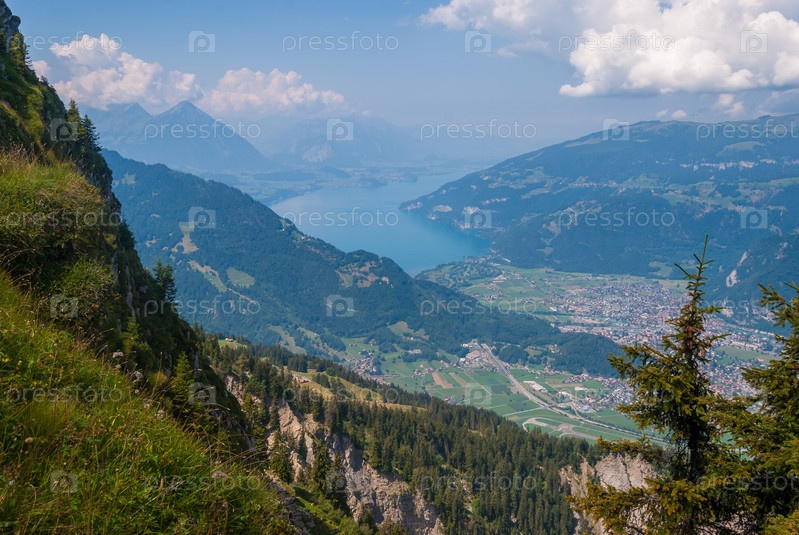 Красивая долина Интерлакен и озеро Тунерзее. Альпы Швейцарии