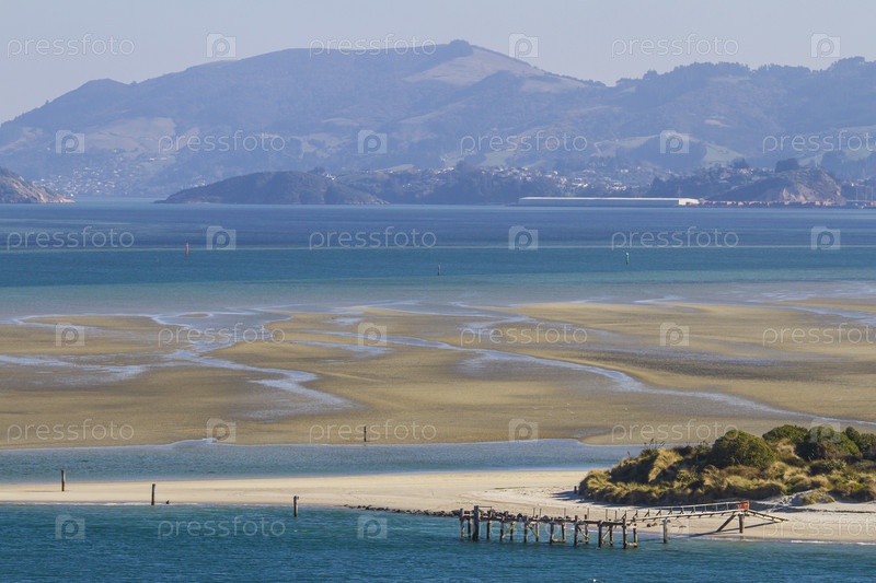 Горы, морской залив и песчаная коса