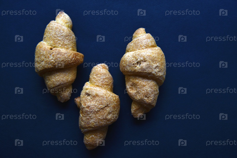 Французские круассаны их мучные и сладкие на черном фоне. Вкусные круассаны крупным планом. Вкусная французская закуска к чаю