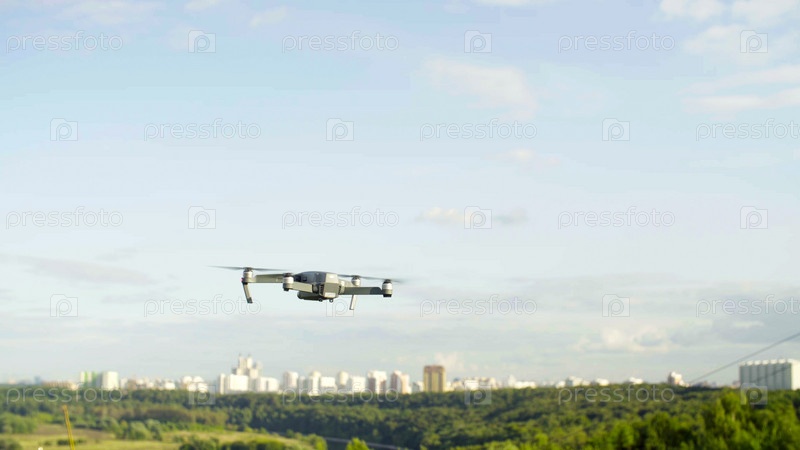 Беспилотный квадрокоптер с камерой, летящей в небе