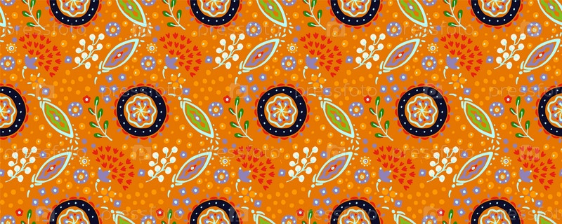 Бесшовный узор с фантазийными цветами, этнический вращающийся повторяющийся дизайн ткани и плитки, натуральные обои, иллюстрация завитка цветочного декора. Пейсли печатает рисованные элементы. Домашний декор