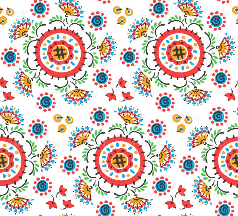 Бесшовный узор с фантазийными цветами, этнический вращающийся повторяющийся дизайн ткани и плитки, натуральные обои, иллюстрация завитка цветочного декора. Пейсли печать рисованной элементы.Украинский узор