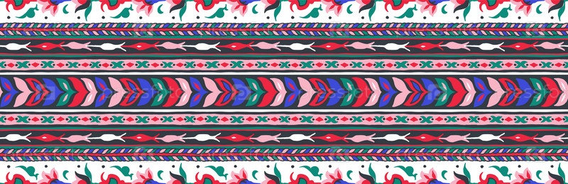 Геометрический дамасский орнамент. Икат границы. Этническая вышивка с листьями и монограммами. Племенная векторная текстура. Бесшовный народный узор в ацтекском стиле. Индийский, скандинавский, цыганский, мексиканский, африканский ковер