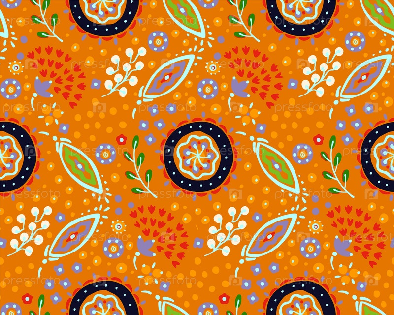 Бесшовный узор с фантазийными цветами, этнический вращающийся повторяющийся дизайн ткани и плитки, натуральные обои, иллюстрация завитка цветочного декора. Пейсли печатает рисованные элементы. Домашний декор