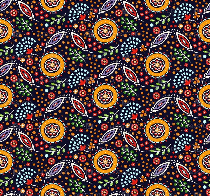 Бесшовный узор с фантазийными цветами, этнический вращающийся повторяющийся дизайн ткани и плитки, натуральные обои, иллюстрация завитка цветочного декора. Пейсли печатает рисованные элементы. Домашний декор