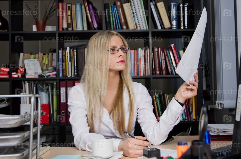 Светловолосая девушка в офисе