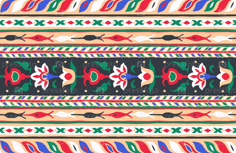 Геометрический фольклорный орнамент икат. Племенная этническая векторная текстура. Бесшовный полосатый узор в стиле ацтеков. Рисунок племенной вышивки. Индийский, скандинавский, цыганский, мексиканский, народный узор