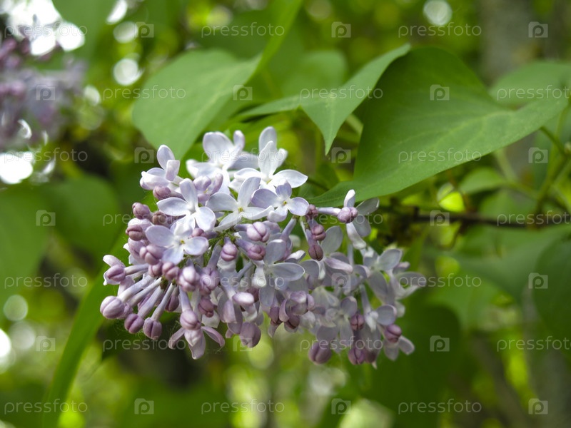 Пышная фиолетовая сирень цветет на кусте весной