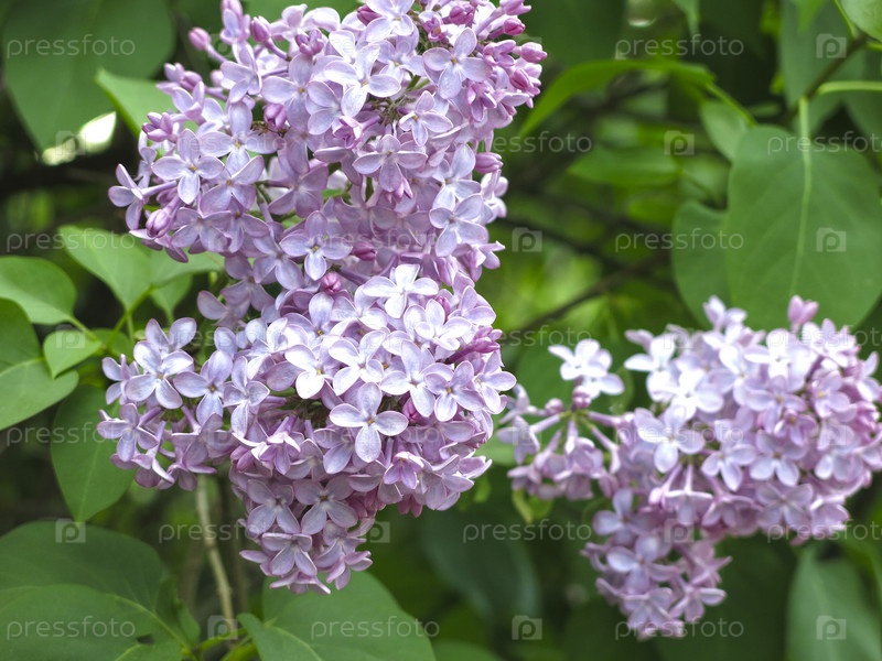 Пышная фиолетовая сирень цветет на кусте весной