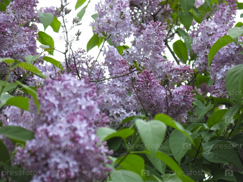 Пышная фиолетовая сирень цветет на кусте весной