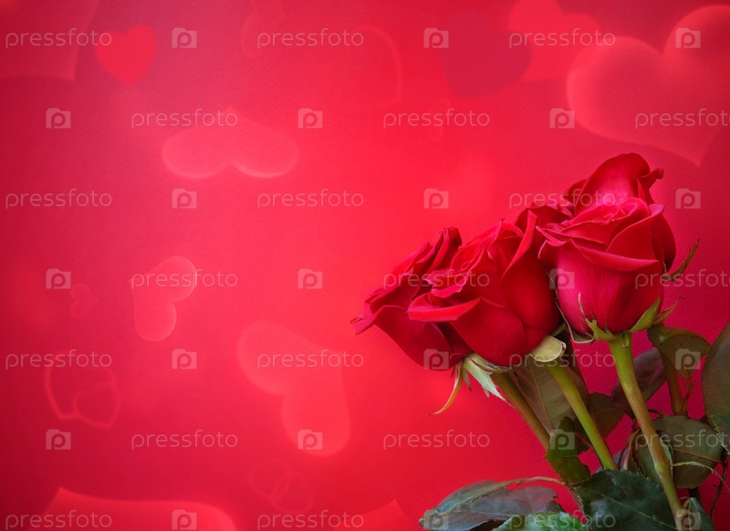 Красные розы на розовом фоне. Выборочный фокус