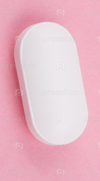 Белая таблетка на розовом фоне