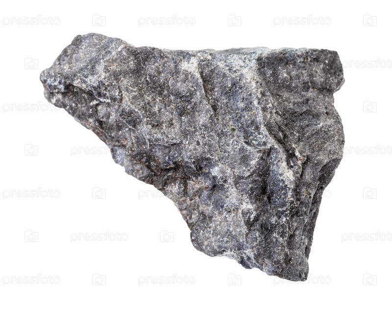 Кусок необработанной серой базальтовой породы, изолированный на белом