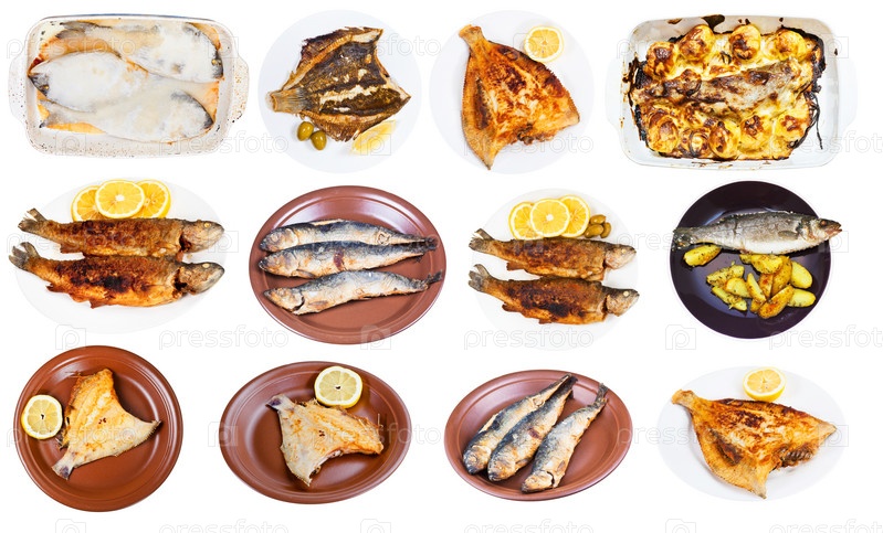 Жареная морская рыба на белой тарелке
