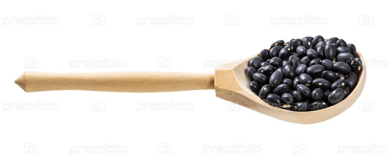 Ложка с сырой черной мексиканской фасолью изолирована