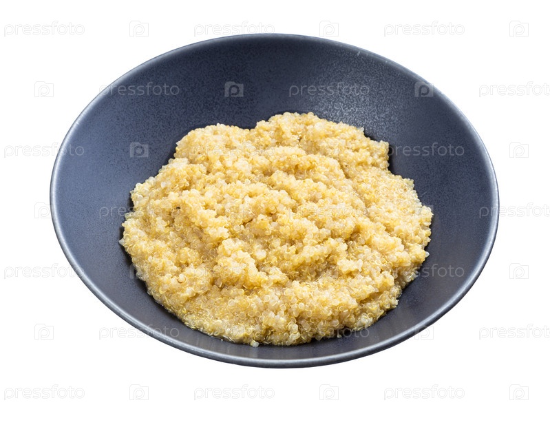 Каша из зерен лебеды в серой миске изолирована