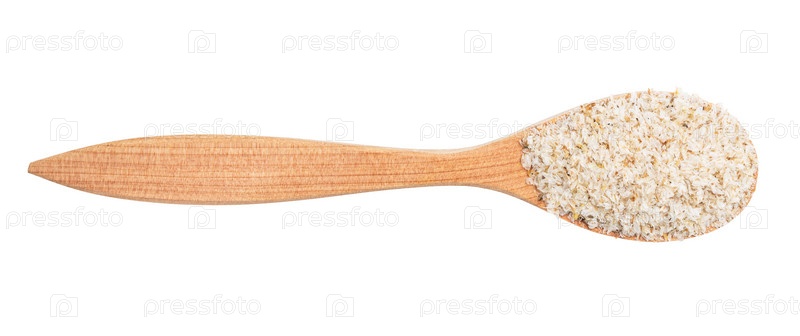 Выше вид шелухи подорожника в деревянной ложке изолированы