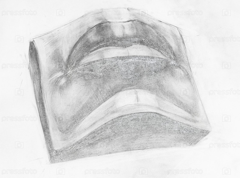 Академический рисунок - нарисованные от руки мужские губы