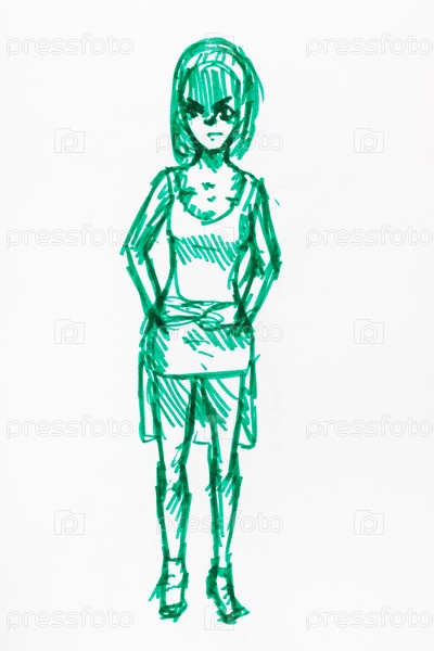 Эскиз молодой женщины в коротком платье