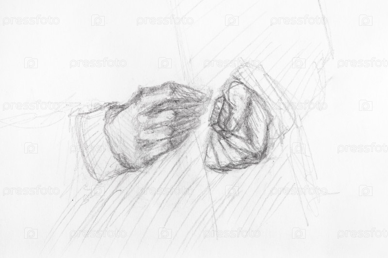 Эскиз жеста рук старика крупным планом