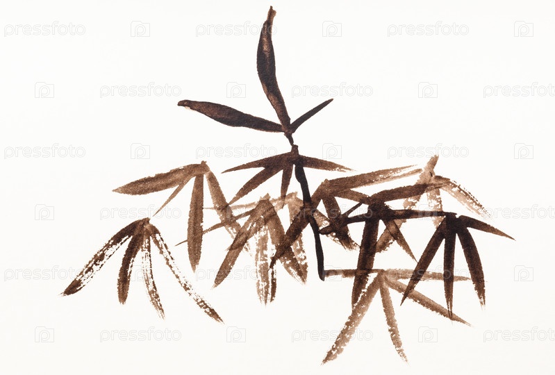 Бамбуковая листва, нарисованная коричневыми акварельными красками