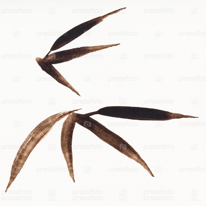 Бамбуковые веточки с листьями, нарисованными акварелью