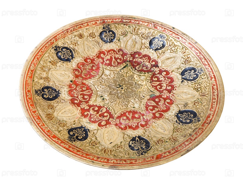 Индийская тисненая латунная пластина ручной работы изолирована