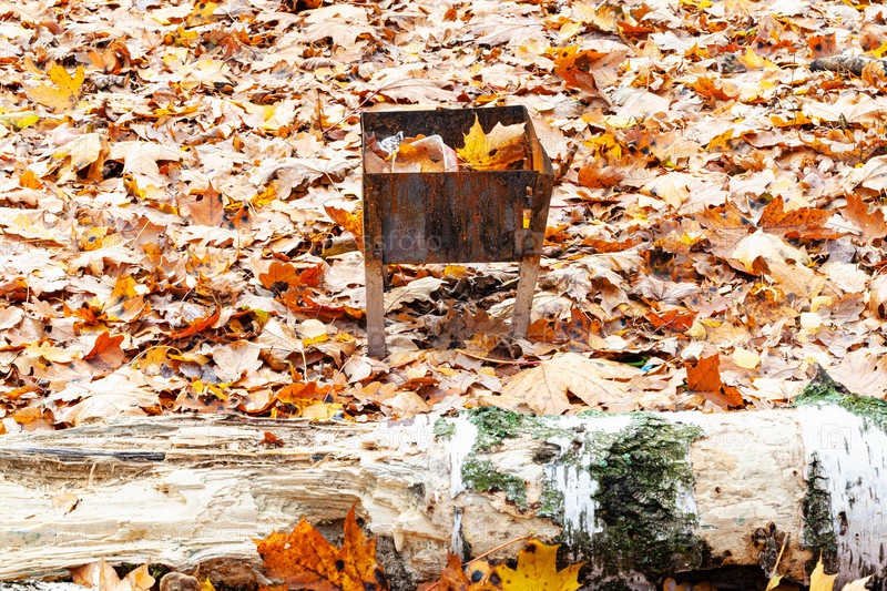 Ржавый гриль на лугу, покрытом опавшими листьями