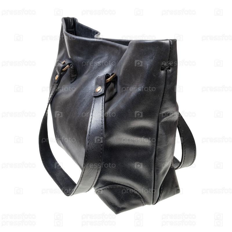 Сумка для покупок из черной кожи ручной работы, изолированная
