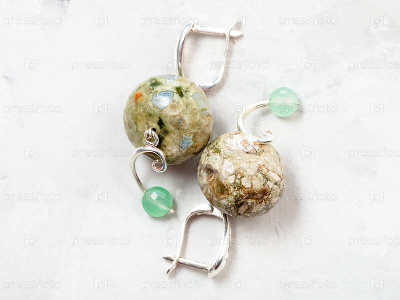 Серебряные серьги с риолитом и нефритом