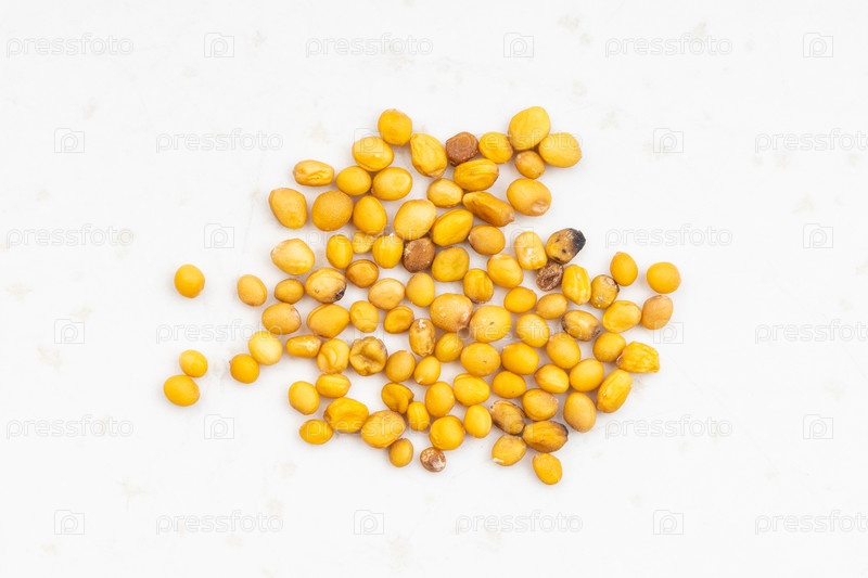 Желтые семена горчицы Sinapis Alba на сыворотке