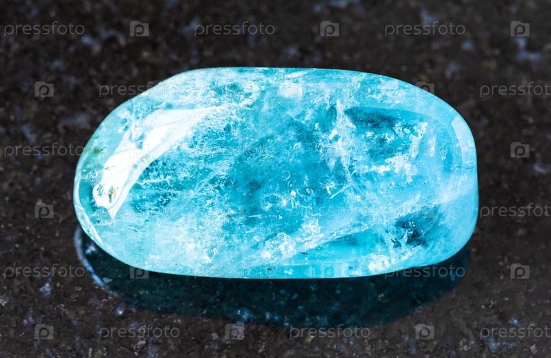 Свернутый камень Аквамарин (голубой берилл) на черном